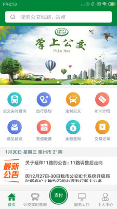 《亳州公交》app是一款掌上公交客户端,为亳州创造智慧城市生活,为用户提供实时公交、二维码支付、定制公交、IC卡圈存等服务,非常的方便快捷;需要的话就下载试试吧!