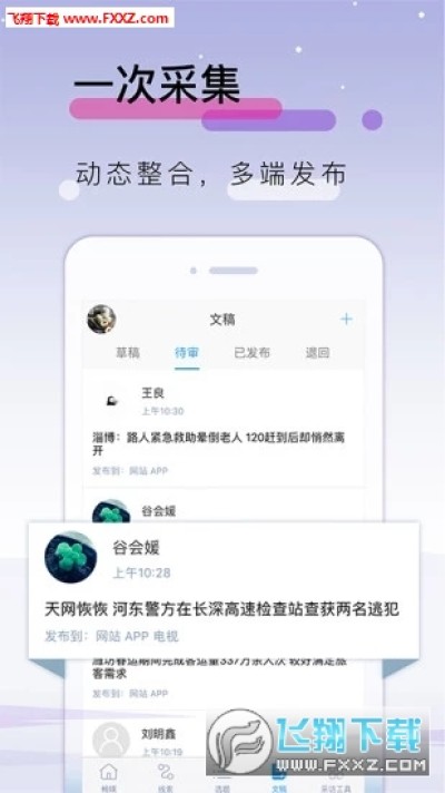 它是移动端内容生产采集发布平台,让新闻生产,每时每刻。它为记者随时随地进行生产、展示、管理、分发采访素材、稿件提供帮助,并在特殊场景下保证新闻素材回传效率,同时做到与电视台原媒体库结合统一,使回传、播放一体化,实现第一时间采写,第一时间播报,发稿与新闻事件同步。