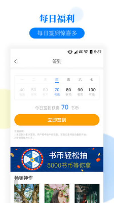【众多福利】每日签到送书币,福利中心完成任务获取更多奖励;