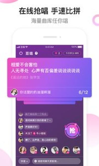 无论你是唱遍KTV的K歌麦霸,还是五音不全的自嗨歌手,来豆唱,和爱唱歌的小伙伴们一起唱歌!全民K歌,花式斗唱,根本停不下来!