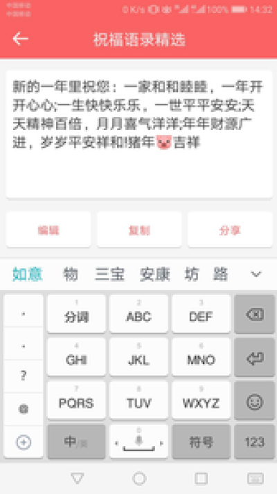 1.春节祝福图文可用户自定义编辑、复制、保存、分享好友、朋友圈。