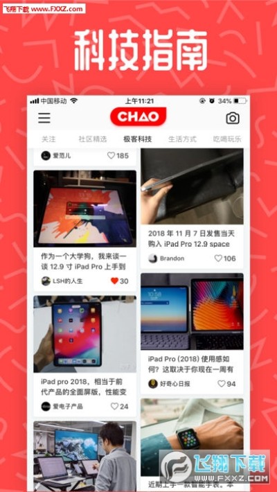 知乎在 App Store 低调上线一款名为「CHAO」的社区 App。该 App 的定位为「男生种草社区」,主要为男性用户推荐好物,并提供关于潮流单品的试用测验。CHAO 设置了「极客科技」这种偏向男性用户的频道。