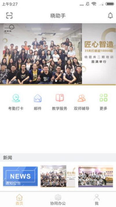 晓助手APP,是晓教育集团互联网中心为晓教育集团内部打造的高效办公平台,该平台融合了包括运营、办公自动化、人事等在内的企业内部协同事务,助力晓教育旗下包括星火教育,晓培优,晓双师,晓直播等体系的员工日常移动办公需求。