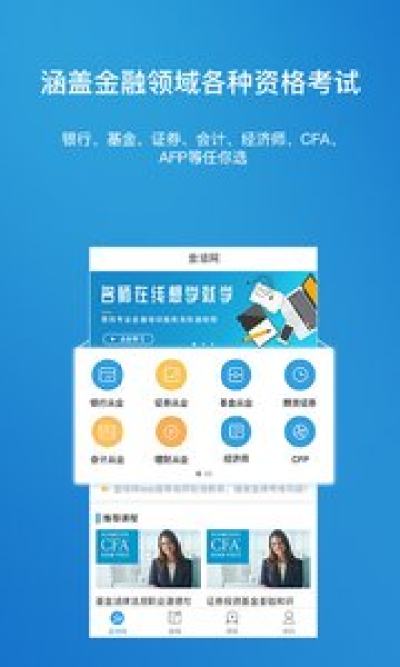 金培网app手机版是一款金融服务平台,这款软件为用户提供了一个专业的学习服务平台,有专业的视频课程,还能够进行课后练习,为用户讲解习题等等,还有各种模拟考试等服务,帮助大家提供专业知识,喜欢的朋友赶紧下载吧。