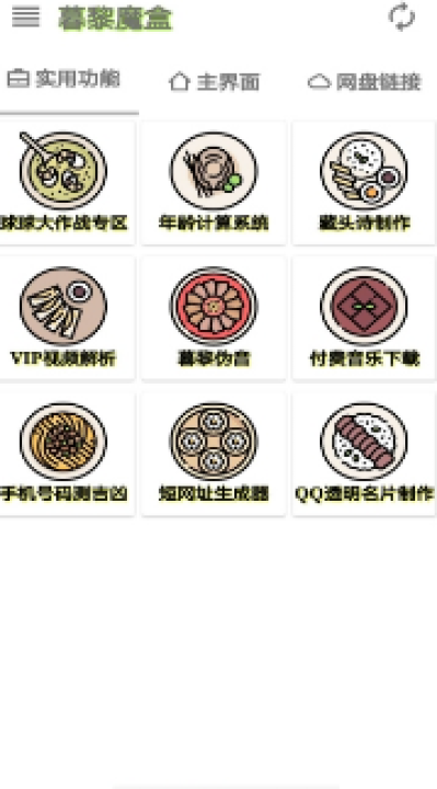 网盘链接、藏头诗制作、伪音、QQ透明名片制作、付费音乐下载功能、周岁计算功能等等