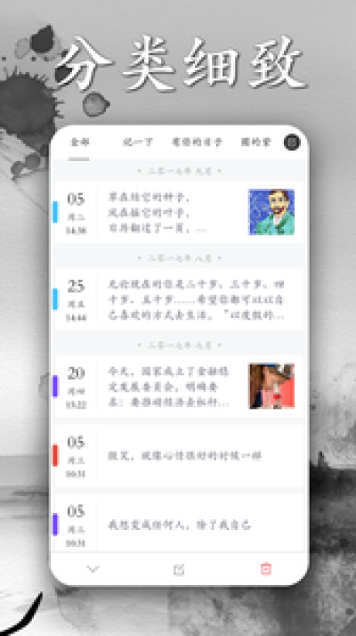 墨记APP是一个简约但不简单的的记事本应用软件,功能特色亮点多,让你的日记更加的有个人特色,精致的排版和图文编辑等功能,让你爱上写日记,更有每日精选美文美句推荐,让你随心阅读,快下载墨记APP体验吧。