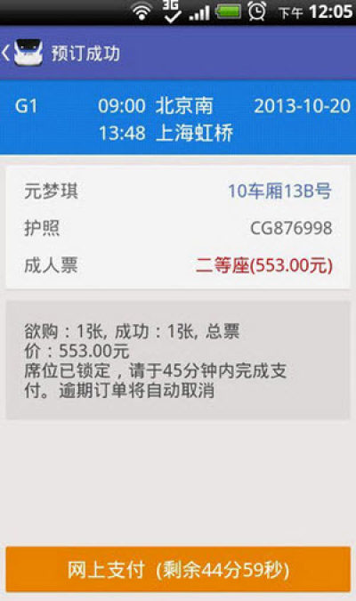 2.购票仅需4步:1)选择时间与城市,2)选择车次,3)填写个人信息,4)在线支付购票;