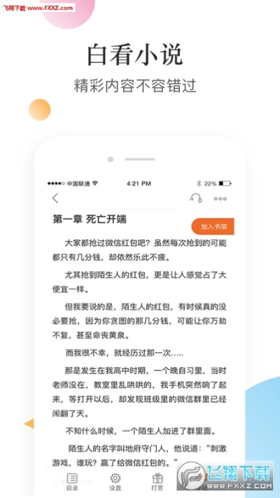 便捷搜索,找书更方便,多样化的阅读设置,每一个阅读姿势都舒服;