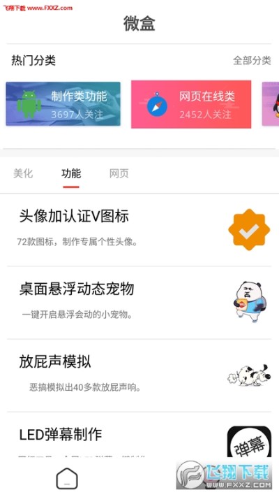 微盒工具箱app是一款功能非常强大的手机app,这款软件为用户提供的都是各种美化必备的功能,在微盒app上你可以制作头像、聊天背景,各种悬浮宠物等等,好玩而且简单,感兴趣的快来下载吧!