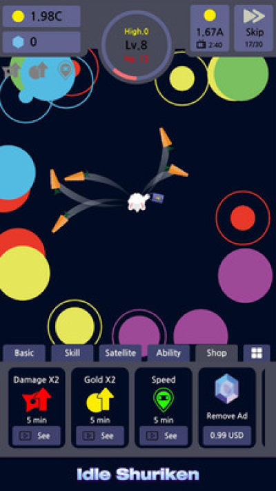 闲置手里剑手游是一款休闲益智类的游戏,游戏的画面风格简约,有丰富的武器等你来解锁,利用好手中的武器快速的消灭球球,喜欢休闲类有的的玩家,快下载闲置手里剑手游体验一下吧,挑战你能坚持的最久时间。