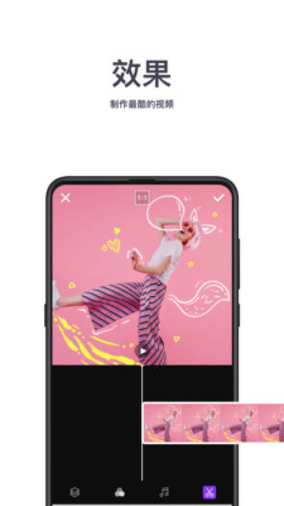 ·数种玩法,动效、文字、表情、配乐为你的视频每一帧赋予魔法般的震撼色彩。