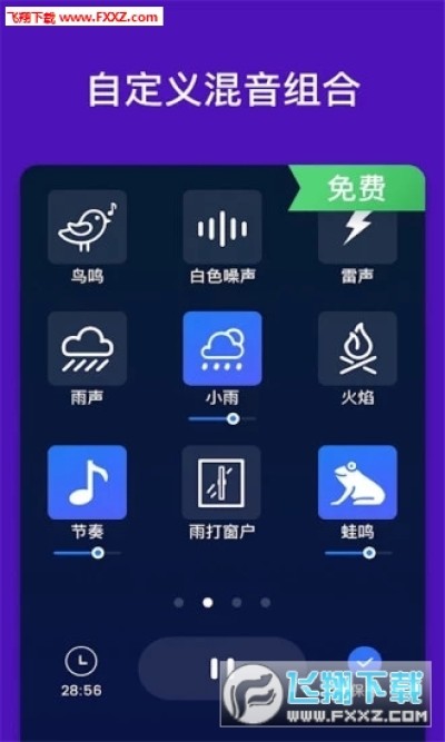 我们提供了30多种睡眠声音可以帮助你放松,获得一夜好眠。经科学证实,这些声音都有助于睡眠、纾解压力、并能缓解失眠与耳鸣。您可使用大自然的声音、白噪音、令人放松的旋律与安抚神经的声音创造自己的睡眠专用声音,获得您梦寐以求的高品质睡眠!