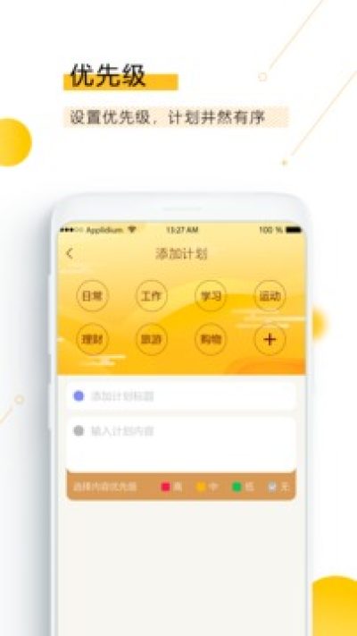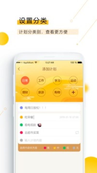 清晰分类:添加计划可以分类别,查看计划更方便;