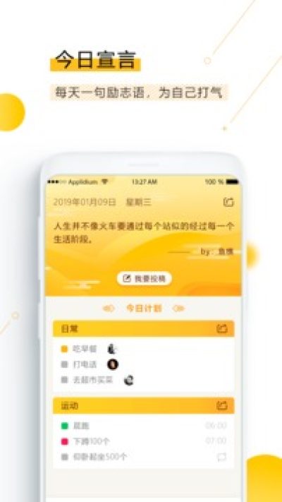 每日宣言:每天一句励志语,为新的一天加油打气;