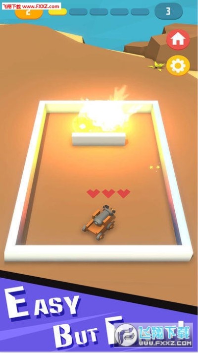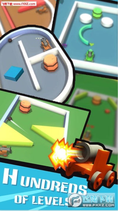 2、极简风格变的大炮,在一个画出的集合图形中,一个大炮,一辆坦克车,一个目标,完成大炮的轰击任务,就转战下一个战场了,非常精彩。