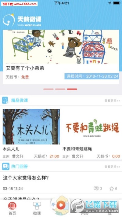 天鹅微课是天鹅阅读网创办的亲子教育微课及内容分享平台。目前设有微课与问答两大板块。