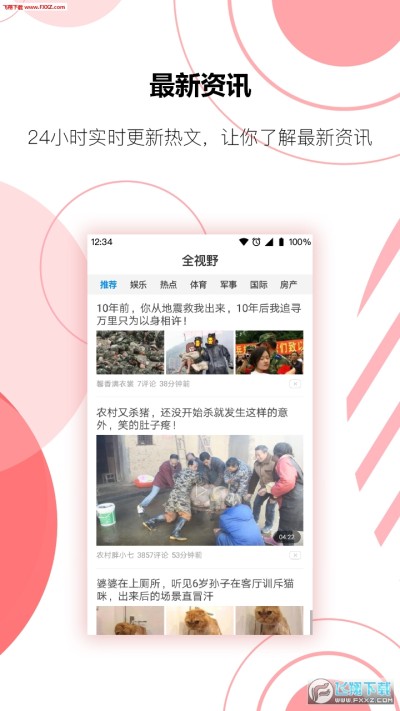 全视野是一个新闻资讯平台,软件包含海量资讯,上达国际大新闻,下至民间趣闻怪谈,包罗万象,给你最全面的视野。我们的新闻资讯,真实权威,有正版授权,事实派,绝不编撰,最新最热门的新闻资讯,24小时实时更新,让你时刻了解最新资讯。