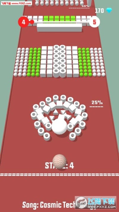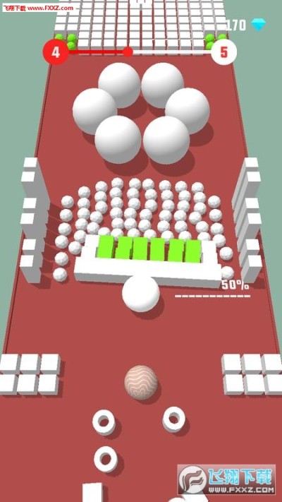 玩家在游戏中操作大白球去扫除所有的障碍物,场景很丰富,撞开所有彩色的障碍物,每到一个关卡就会有不同颜色的障碍物和形状,想要得高分并不容易,休闲打发时间不错。
