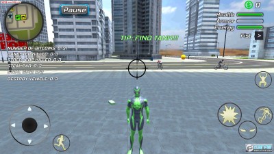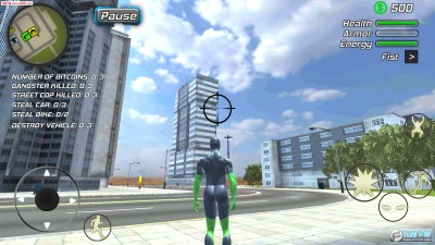 你有特殊的实力。你可以从你的眼睛射出危险的激光束。你可以用绳索射向建筑物并爬过建筑物顶部。你的腿也非常强大。不要低估他们。不要搞砸警察,他们是好人。城市的风格类似于迈阿密或拉斯维加斯,但实际上它是纽约。