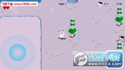 游戏逻辑:雪兔子在堆雪人的雪球拍摄。当雪人被破坏,胡萝卜被丢弃。收集胡萝卜恢复饥点。雪人有时兔子扔雪球,当他避开它,雪球落在地面上的雪兔子能捕捉到它更多的雪球子弹。当它是夜晚,雪人变得更强。每个地图是随机生成像胭脂般的游戏,每个阶段的水平难度增加各个层面的成功。