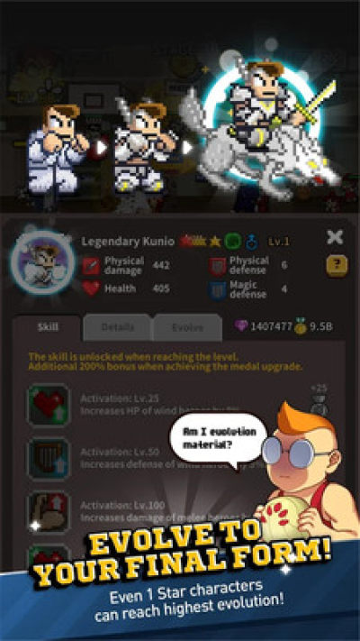 热血系列的经典回归,包括国夫在内的经典角色再次登场,可以收集培养并进行转生获得更强大的属性,国夫的归还中要击败每所学校的老大来获取强力装备,在1000多个关卡中获得无止尽闯荡吧。