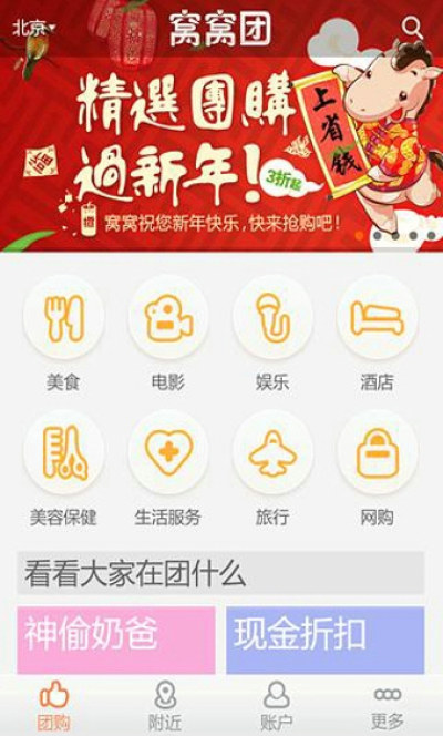 窝窝团是一款安卓手机端购客户端,小巧实用,窝窝团是中国最大的生活服务电子商务平台之一,各种吃喝玩乐各种优惠应有尽有!