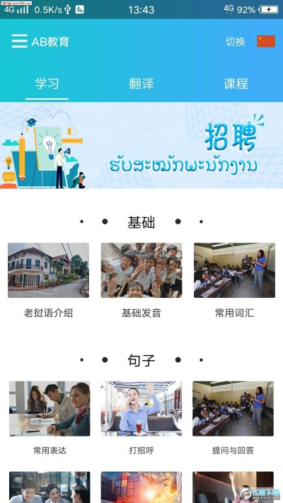AB教育APP是一款提供老挝语和汉语的学习软件,由AB集团出品,目前拥有超过20万条最实用的中老词汇与例句,包括基本语音、常用词汇、中老词典、例句查询、视频教学等内容,通过简单实用的方法,使用户轻松入门,学好老挝语或汉语