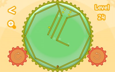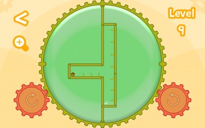 玩家可以操控左右两个小齿轮,控制中间大齿轮的旋转,目的是让小球到达终点。