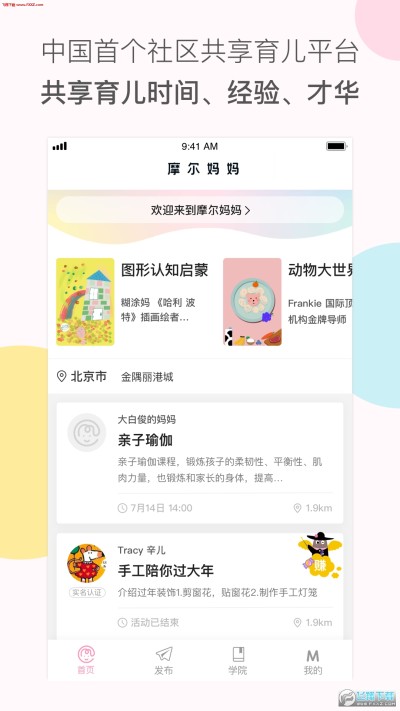 在摩尔妈妈平台上,妈妈爸爸们可以实现互助教育孩子、互助看护孩⼦,共同降低育⼉成本,还能让孩⼦们在社区里轻松找到玩伴,享受到社区妈妈爸爸们多样化的优质家庭教育、优质育⼉服务。