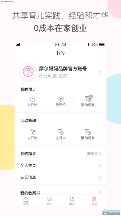 摩尔妈妈是社区共享育儿平台,通过互联网连接、赋能,帮助爸爸妈妈们共享育儿时间、育儿经验和育儿才华,转化为0-6岁孩子目前特别缺少的优秀“早教老师”、“保育老师”。