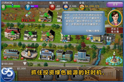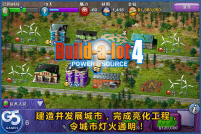 《地产大亨4:电源 Build-a-lot 4:Power》是一款模拟经营游戏。在这款热门游戏中,你将建造你的城市,让城市变得流光溢彩,令城市不断地发展壮大! 你已经知道建造房屋、商场和餐馆的方法了吧?现在,是时候把资金投入到绿色能源上了!建造太阳能发电厂、风力发电厂,甚至建造核电站,使你的城市走可持续的发展道路,令城市持续繁荣,使你之后的数代人也因此受益。不过你需要小心,建设速度若是太快,则有可能让系统超载并引起大范围的断电。所以,请你慢慢来,提前做好计划,仔细管理你的能源资源。做好准备,再次考量已有地产的布局以及基础设施的情况,甚至要做好从头开始的准备。若要实现“绿色发展”,你就需要在社区中建造生态环保的商店、太阳能供热的游泳池、自行车道等。尽你一切所能,打造世界上最节能的城市吧!