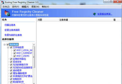 首次运行时,Eusing Free Registry Cleaner的界面是英文的,其实它带有简体中文语言,你可以在language菜单中切换。