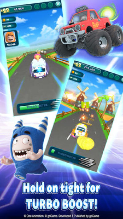使用turbostarts,奖金,Fuse的拳击手套,泡泡的无人机等等,跑得更远,得分更高!