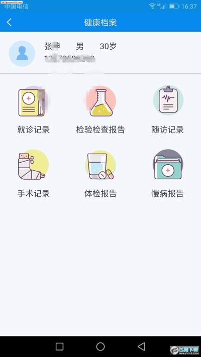 在首页选择“健康档案”可以调阅历史就诊记录,检验检查报告 、随访记录、体检报告等内容。