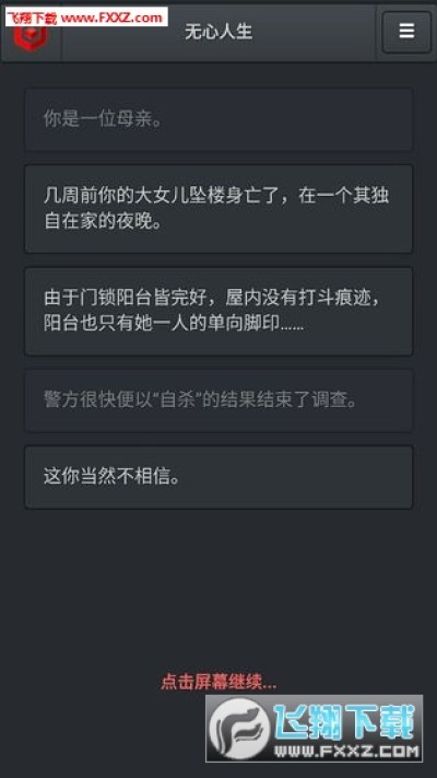 《无心人生手游》是一款角色扮演类的游戏,游戏采用了经典的文字玩法,通过关卡给出的信息,找到线索及相应的物品,解开谜题,精心设计的故事剧情等你来体验,赶快下载吧!