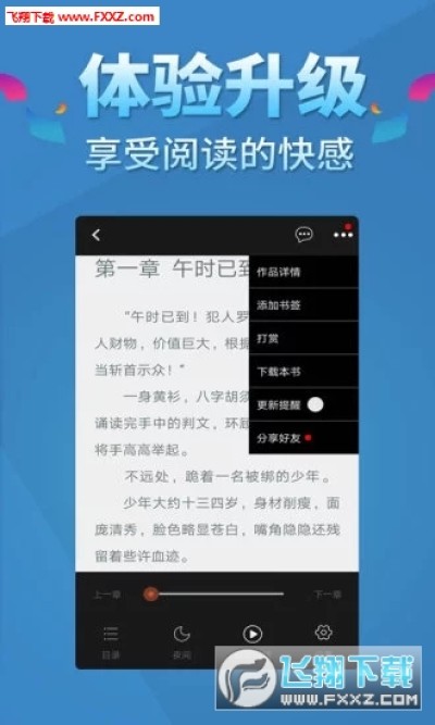 ·实用功能:收藏夹、护眼夜间模式、调整字体大小等;
