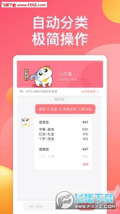 智能沟通:主人每次只需要跟萌宠管家说“消费+金额”,管家就会智能识别,认真记录并完成分类,真正做到高效便捷,都2019年了,谁还自己理账单鸭?