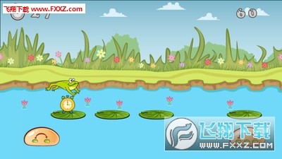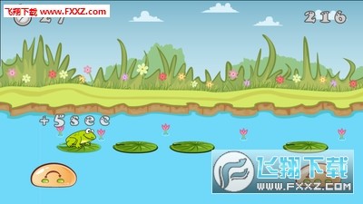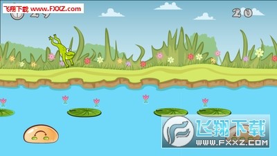 游戏玩法是帮助青蛙通过点击单双跳跃键,从叶子跳到另一篇叶子上。