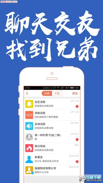 卡友地带app是卡车人的专属社交平台,众多的卡车人汇集在这里,分享交流自己的经验,也给卡友们带来诸多的关怀,卡友地带app还有实时更新的新闻资讯,专属的卡车电台,更多功能特色,下载app体验吧。