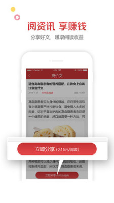 【分享赚钱-分享文章赚零花】通过微信、QQ等移动社交软件分享来米资讯内的高质量内容,朋友阅读后可以轻松赚零花钱;