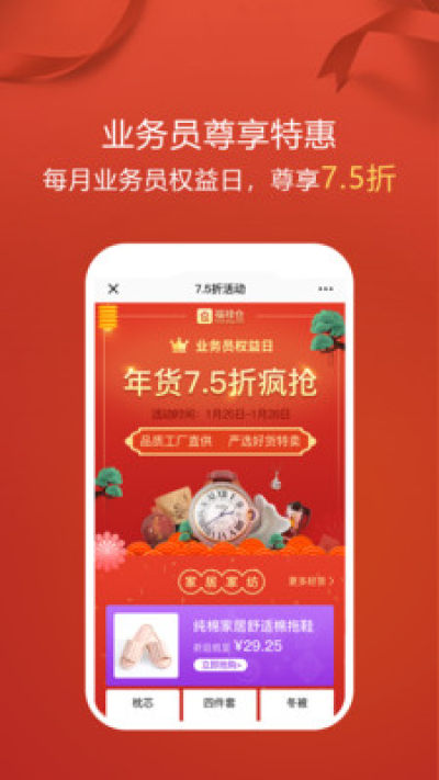 每月25~28日业务员权益日,尊享活动商品出厂价的7.5折特惠。