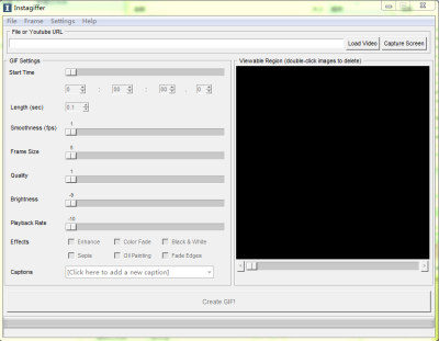 Instagiffer是一款小巧实用的gif制作软件,操作简单,加载玩待剪辑的视频后,输入要转换的结果参数,例如Gif图像的持续时间,平整度、 帧大小和质量等内容,单击创建就可以搞定了。如果你想要修改动画,先在帧控制面板中选中要修改的帧,然后在画板上使用相应工具进行绘图修改,修改完毕后点击帧控制面板中的“修改当前帧”按钮完成修改。