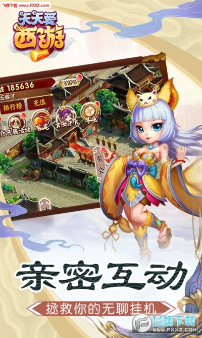 天天爱西游是一款以西游记故事为背景的回合制游戏,游戏中经典玩法配合原创系统,让你爱不释手!浓郁的西游气息为你与小伙伴们展开取经之路。创新的玩法,精美绝伦的画面,爽快的战斗体验,华丽的技能特效,天天爱西游为你构建一个不一样的西游世界,从此告别游戏 任务的简单与枯燥!