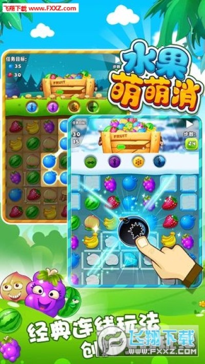 《水果萌萌消官方版》是一款休闲类的游戏,游戏采用了经典的消除玩法,水果的风格,全新的解谜,绚丽的特效,简单的操作,玩家易上手,搜集金币和钻石解锁更多内容,赶快下载吧!