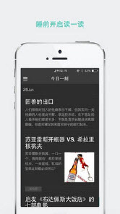 三五分钟空闲不知道可以干什么,打开「一刻」吧!餐厅等上菜,出门坐公交,上班偷个懒,睡觉前,马桶上,所有这些闲暇时间在一刻的陪伴下将变得丰富多彩。