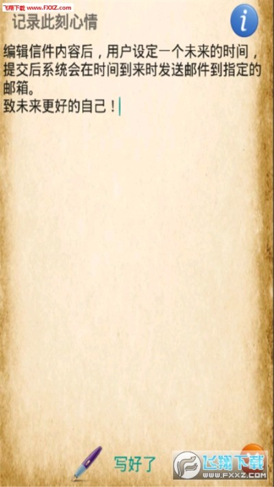 编辑信件内容后,用户设定一个未来的时间,提交后系统会在时间到来时发送邮件到指定的邮箱。致未来更好的自己!