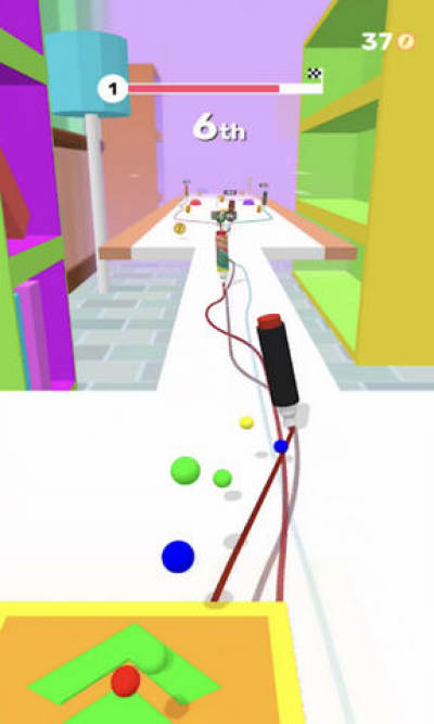 3、多人竞技跑道上会有多条轨迹,即可独自打拼也可合作绘画玩法丰富。