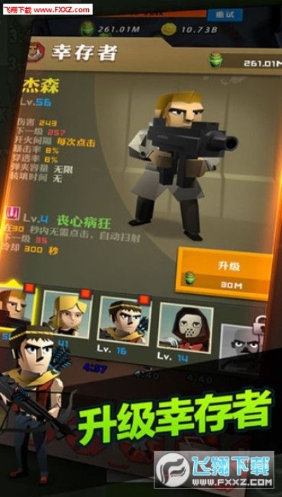 2、海量僵尸等你消灭,完成你的武器升级,解锁新的人物,体验新的战场;