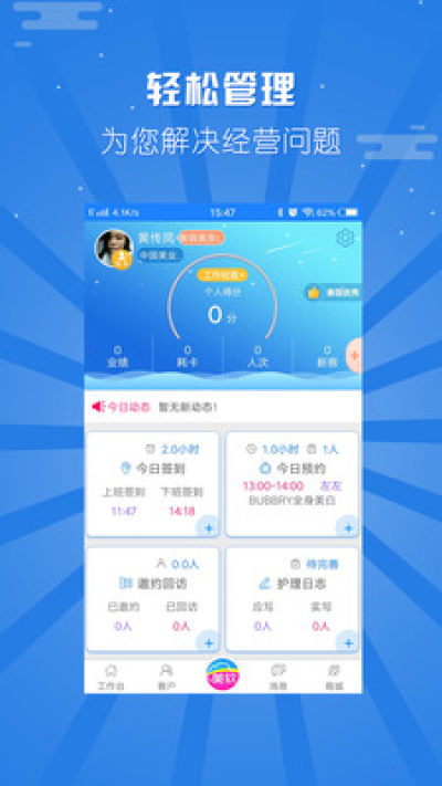 《美软》app是一款为从事美妆行业用户定制的办公移动端,用户可以在上面一键签到、日常收银、护理日志等等,记录和协同管理式办公,让绩效更加可视化;需要的话就下载试试吧!