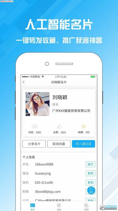 轻松管理人脉和客户,智能名片夹提升联络效率,店铺、企业、公司营销推广宣传必备。